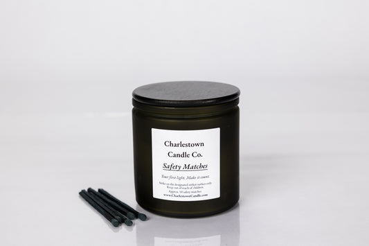 Our match jars are designed to be both functional and beautiful — a small detail that makes every burn feel intentional. Each glass jar comes filled with charcoal wooden matches and a striker pad on the bottom, so you’re always ready to light your next candle. Minimalist in design, with a square label that pairs seamlessly with our candles, these jars look just as good on display as they do in use.